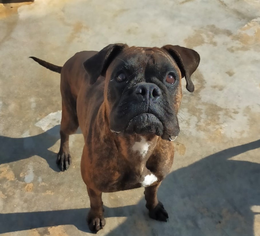 Wesen: liebe kleine Boxerhündin, leinenführig, kennt noch nicht viel