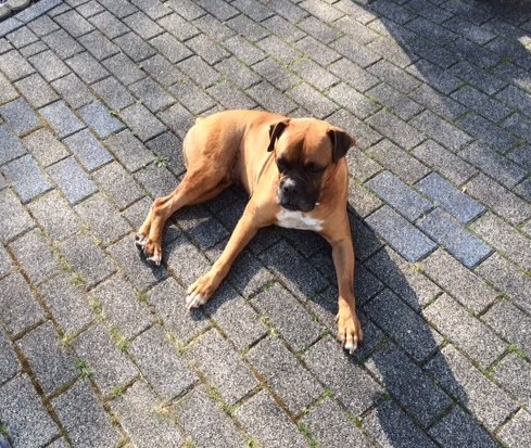Warum man ihn auf der Perrera abgabg, vermögen wir nicht zu sagen. Ein so toller Boxer, der scheinbar bislang nie etwas Schlechtes erlebt hat.