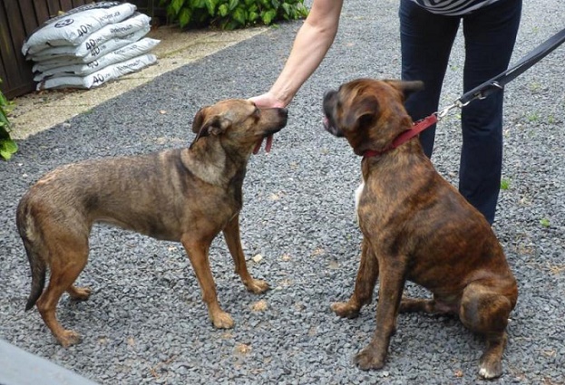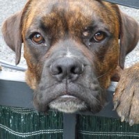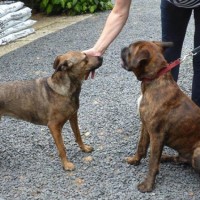 Wir konnten ihn auf einer Pflegefamilie in Spanien unterbringen. Dort lebt er nun mit 2 Boxermädchen zusammen.