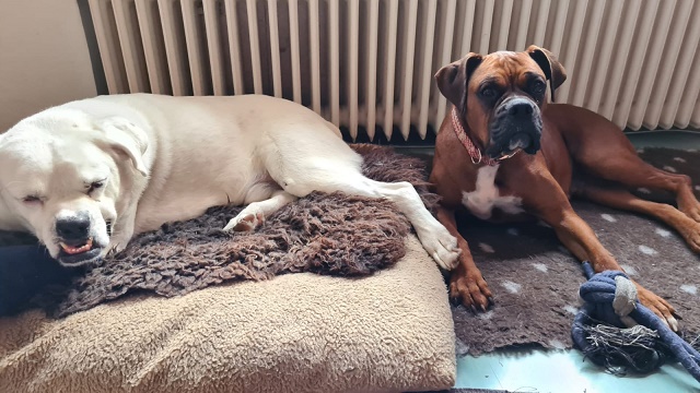 Wir alle leben zur Zeit in einer super lieben Pflegefamilie. Dort mangelt es uns an nichts und auch die Zuneigung der Menschen ist uns gewiß. Dafür danken wir Boxer natürlich mit unserer unverwechselbaren Art.