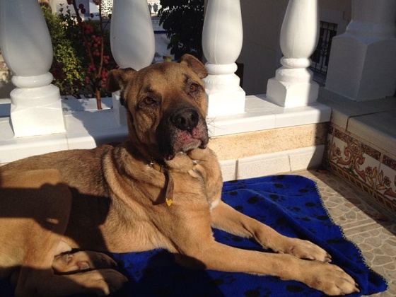 Als eher ruhiger und zurückhaltender Boxer hatte er es nicht einfach im Tierheim, daher hat er nun zunächst einmal eine Pflegestelle in Spanien, was er sehr genießt.