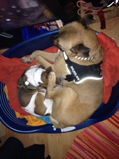 Spike und ich machen einfach alles zusammen und einer alleine geht gar nicht. Wir schlafen zusammen, holen gemeinsam unsere Streicheleinheiten ab und wir füttern uns gegenseitig!