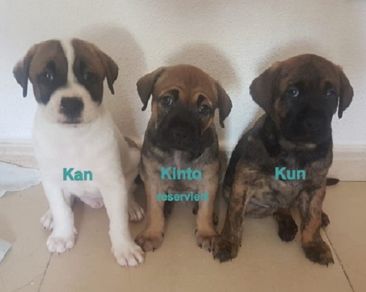 Bei unser Mama – einer netten weißen Boxerhündin – hat man jedoch geplant, sie einmal „belegen“ zu lassen. Behalten wollte man nur 1 Welpen und so wurden wir 3 anderen dem Tierschutz übergeben. Voller Glück können wir sagen, dass wir die „richtigen Rassen“ als Abstammung haben. So wurden wir von einem deutschen Verein aufgenommen; die nun dafür Sorge tragen, dass wir in gute Hände vermittelt werden. Leider ist das bei ganz vielen Welpen in Spanien nicht so……..