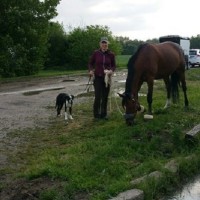 Nach Feierabend holt Frauchen mich dann ab und wir fahren gemeinsam zum Stall. Hier habe ich auch eine Freundin – eine junge Aussi Hündin der Stallbesitzerin. Sie erwartet mich immer schon sehnsüchtig und dann legen wir beide noch eine extra Toberunde ein. Abends plumpse ich dann auf mein Kissen und schnarche die ganze Nacht zufrieden .