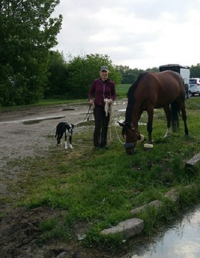 Nach Feierabend holt Frauchen mich dann ab und wir fahren gemeinsam zum Stall. Hier habe ich auch eine Freundin – eine junge Aussi Hündin der Stallbesitzerin. Sie erwartet mich immer schon sehnsüchtig und dann legen wir beide noch eine extra Toberunde ein. Abends plumpse ich dann auf mein Kissen und schnarche die ganze Nacht zufrieden .