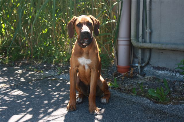 Ich habe mich in meiner neuen Pflegefamilie schon super gemacht, sagt mein Pflegefrauchen. Ich bin weitesgehend stubenrein, es sein denn Du passt nicht wirklich auf! Mit meinem Mitbewohner dem Boxer Paul teile ich mein Körbchen, ist zwar ein bißchen eng aber gemütlich. Mit anderen Hunden habe ich überhaupt kein Problem. Außerdem bin ich sehr gelehrig und kann schon Sitz und Platz machen. Spielen tue ich natürlich für mein Leben gern und bin für jeden Spass, bzw. Dummheiten zu haben! Eine Hundeschule solltet Ihr mit mir auch auf jeden Fall besuchen. Mein rechtes Auge hat eine leichte Trübung, die laut gründlicher Untersuchung beim Tierarzt keinerlei Beeinträchtigung auf mein Sehvermögen hat und die sich wahrscheinlich mit dem Alter verwachsen wird.