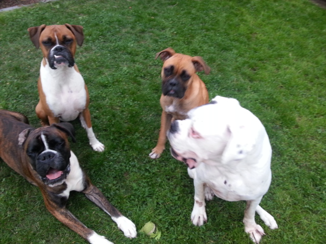 Hier in meiner Pflegestelle leben außer mir noch 3 Kinder, 3 andere Boxer, 3 Katzen und mein Pflegepersonal.