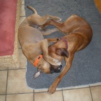 Natürlich ist hier bei zwei Jungspunden immer viel los und manchmal kostet es Frauchen schon ein paar Nerven, aber wir entwickeln uns prächtig und Frauchen ist auch ganz stolz auf uns.