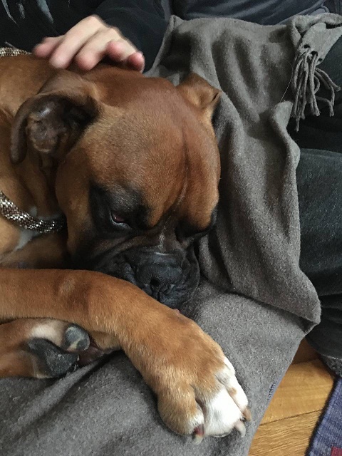 Er lernt unglaublich schnell, versucht aber natürlich noch immer seinen Boxer typischen Dickschädel durchzusetzen. Mit ein bisschen Geduld und Spucke (hauptsächlich seine) werden wir das aber auf jeden Fall hin bekommen.