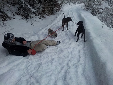 Ich liebe Spaziergänge und auch Schnee finde ich toll. Anderen Hunden gegenüber zeige ich mich eher verhalten, da verstecke ich mich eher.