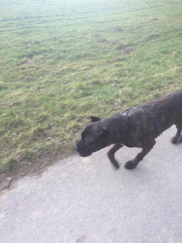 Mit den anderen Hunden verstehe ich mich prima und orientiere mich auch gern an dem hier lebenden Boxerrüden. Wenn der mal nicht da ist, begebe ich mich auf die Suche nach ihm.