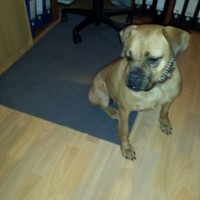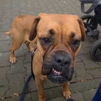 An der Leine zieht sie sehr. Sie hat noch viel zu lernen. Es wird auf jeden Fall eine Ausbildung in einer Hundeschule notwendig sein. Mit Hunden ihrer Größe oder größeren Hunden kommt sie gut klar. Sie spielt sehr vehement und laut mit anderen Hunden. Wenn sie mit Hunden zusammen gerät, die das nicht mögen, kann es zur Rauferei kommen.