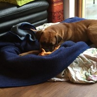 Für einen Boxer bin ich recht zierlich, ich wiege ca 20 Kilo und geh meinen Menschen bis zum Knie. Ansonsten bin ich aber Boxer durch und durch, ich liebe Essen, Schlafen und Kuscheln. Oh ja kuscheln steht bei mir ganz hoch im Kurs!