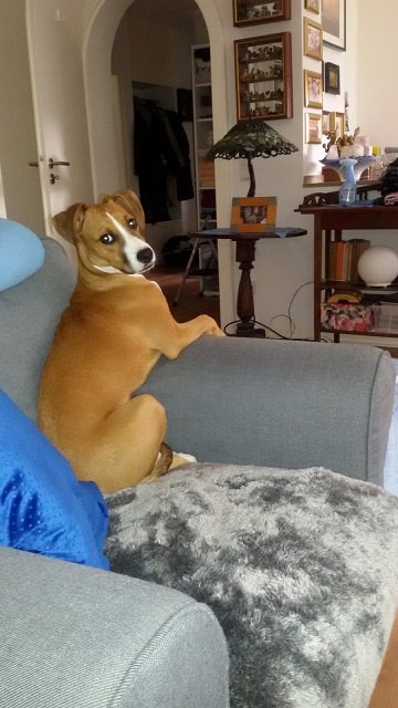 Sie ist so gut wie stubenrein, hat viel Unsinn im Kopf, eben wie es sich für dieses Alter gehört.