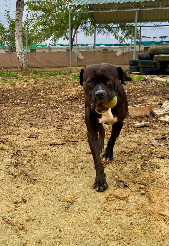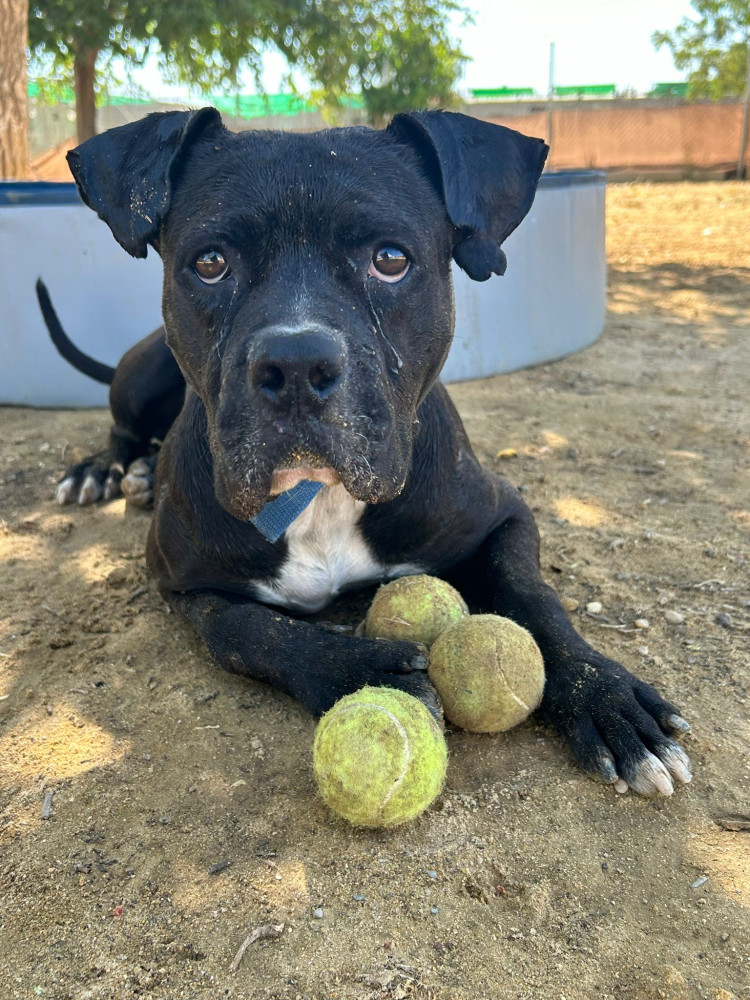 Er ist ein sehr verspielter Hund, er liebt Bälle, er ist sehr anhänglich und er liebt es, spazieren zu gehen.