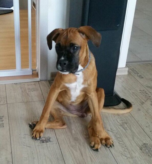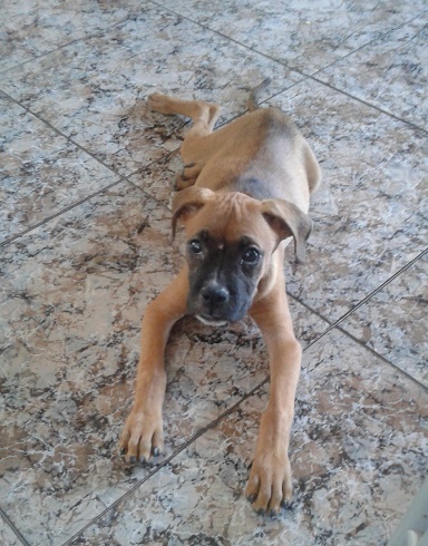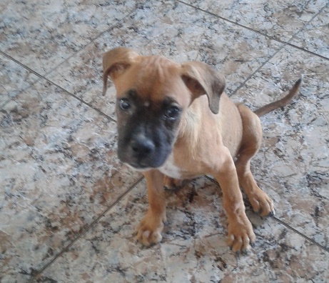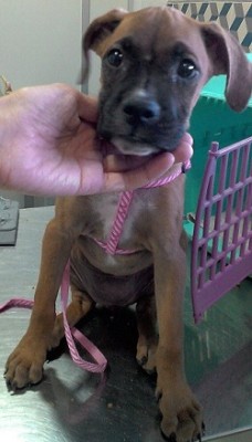 Die kleine Maus ist noch etwas unterernährt und muss nun auf ihrer Pflegestelle erst einmal gepäppelt werden. Unter dem Deckmantel des Tierschutz wurde einfach mit den vorhandenen Boxern gezüchtet.