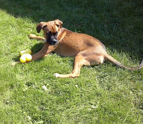 Nicki macht uns jeden Tag sehr viel Freude. Sie stellt jeden Tag was neues an, mal schleppt sie Schuhe in den Garten, mal buddelt sie Löcher, dann klettert sie auf das Schildkrötengehege. Ach ja, es ist jeden Tag was lustiges, was sie sich ausdenkt.