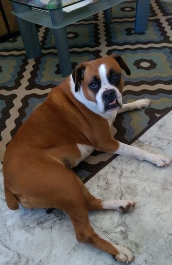 Ein richtiger großer Schatz bin ich, denn eine ausgewachsene Boxer-Dame ist nunmal kein Zwergpinscher.