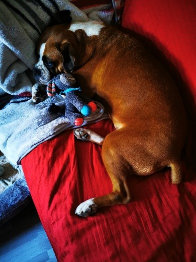 Eines morgens vor ca. 2 Wochen ist Frauchen einfach umgekippt. Ich habe stundenlang (vielleicht auch länger) bei ihr gewacht………….doch sie wachte nicht mehr auf. Eigentlich war sie noch gar nicht so alt und es macht mich, aber auch die Menschen hier von „Ein Herz für Boxer e.V.“ unglaublich traurig.