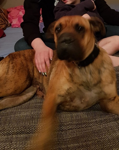 eine gechillte und sehr liebenswerte Boxer-Sharpei-Mix-Hündin.