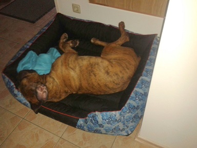 Auf dem Grundstück und im Haus scheint er sich wohl zu fühlen.In seinem Körbchen hat er schon ordentlich was zusammen geschnarcht