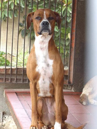 Scheinbar wurde sie dort ausgesetzt. Sie ist ein sehr großes stattliches Boxermädchen, dass schon eine gute Erziehung genossen haben muss.