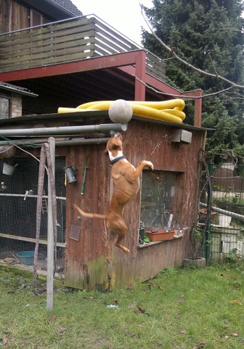 Ein Bildchen wie hoch ich hüpfen kann, wenn ich was möchte, haben wir auch für Euch geschossen.
