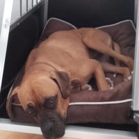 Jetzt arbeiten wir am alleine bleiben, was er eigentlich gar nicht ist, denn da ist noch Tyler, unser Senior-Labrador, aber der scheint ihm nicht zu reichen. Eine halbe Stunde haben wir bis jetzt geschafft, ohne hinterher wischen und aufräumen zu müssen.