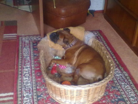 Ich war bereits toll vermittelt, aber aufgrund eines Unfalls und daraus resultierenden Handicap konnten mich meine Leute nicht mehr boxertypisch ausführen, auspowern und beschäftigen. Das gute Essen gepaart mit der reduzierten Bewegung ergab meine leicht füllige Linie.