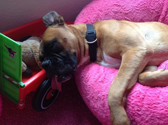 Ich habe zum Glück eine ganz tolle Pflegefamilie gefunden, die mich nun meine Trauer vergessen läßt. Hier gibt es noch einen Boxerkumpel zum Toben und Kuscheln. Der bringt mich auf andere Gedanken und genau das brauche ich im Moment.