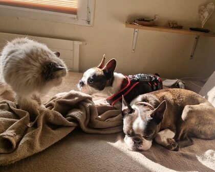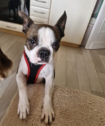 Unsere Boston Terrier Sippe kommt auch aus der gleichen Beschlagnahmung in Spanien wie unsere EB-Family und wird derzeit bei unseren Partnern liebevoll betreut.