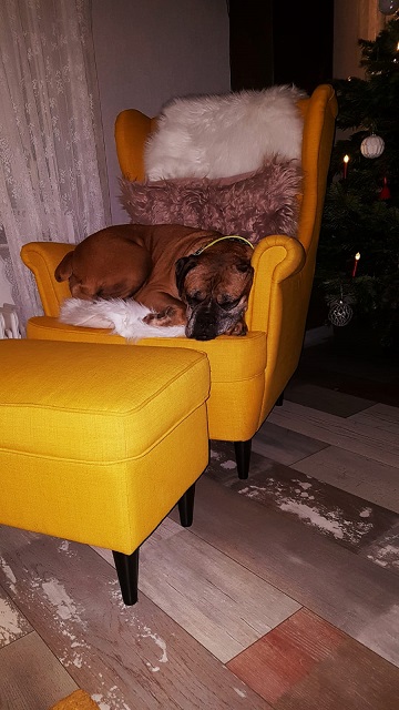 Den gelben Sessel in der Seniorenresidenz habe ich mir gleich am ersten Abend gesichert und mit meinem neuen Kumpel Arko an meiner Seite fühle ich mich sehr wohl.
