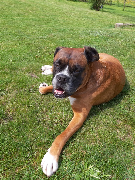 Nichtsdestotrotz bin ich ein sehr liebenswerter Boxer, der aufgeschlossen zu euch Menschen ist. Mit Artgenossen habe ich keinerlei Probleme und es scheint, dass ich auch mit Katzen zusammen gelebt habe, denn ich gehe wie selbstverständlich auf sie zu.