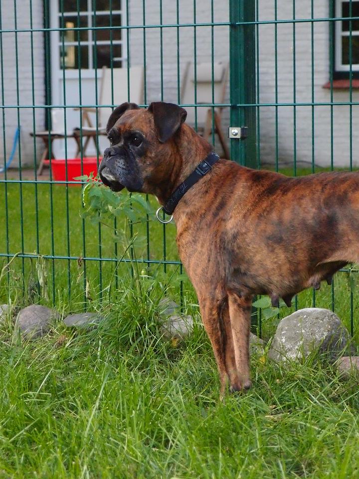 Hier auf meiner Pflegestelle werde ich liebevoll Smartie genannt, denn ich bin ein etwas kleineres Boxermädel!