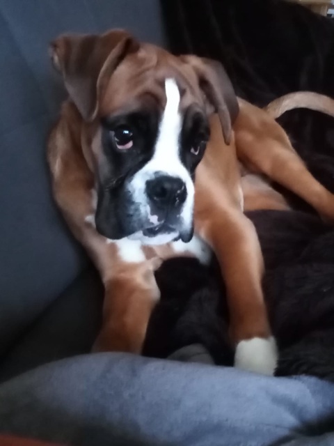 Ich heiße jetzt Spike und mein Name gefällt mir sehr. Meine neue Familie hat noch ordentlich mit mir zu tun, aber so ist es , wenn man einen Boxerwelpen nach Hause holt.