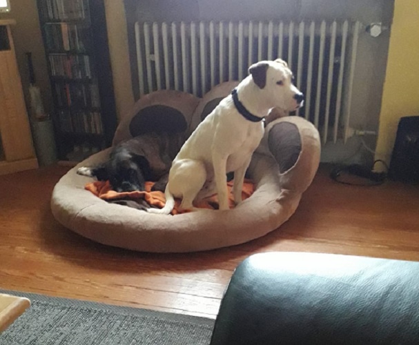 Wenn wir dann zu Frauchens Mama gehen, treffe ich auf 2 Hundekumpel. Und wißt ihr was, die Inara ist auch hier vom Verein vermittelt worden und wir kommen sogar von der gleichen Stelle in Spanien! Das ist zur Zeit dann noch eher mein Fall. Hier kann gekuschelt und getobt werden.