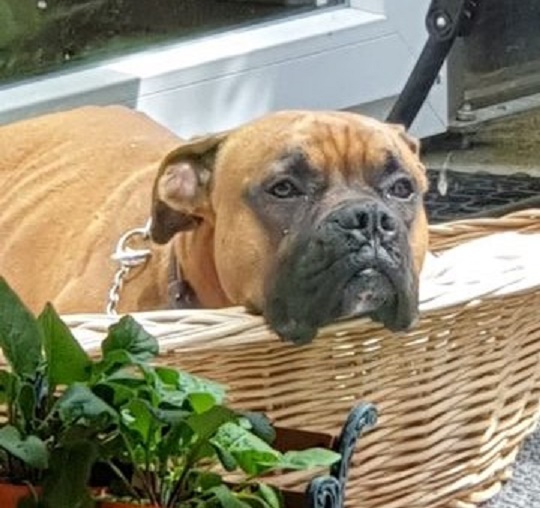 Hier habe ich nun Ruhe! Ich lebe bei boxererfahrenen Menschen. Ich habe einen Papa der mich liebt, eine Oma die mich mit Leckerlies versorgt und eine alte Boxer Freundin!