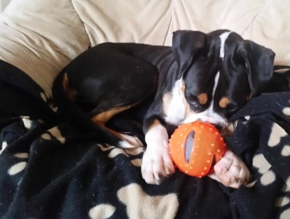 Ich erkunde hier meine Umgebung, kann ganz ausgelassen mit meinem Bällchen toben – aber auch unendlich mit Euch Kuscheln!