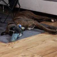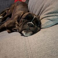 Alles in allem sagen sie hier, ich wäre eine ganz liebe, wilde und verschmuste Boxermaus, die weiß was sie will oder eben nicht will mit einer Schwäche für Socken und Hausschuhe 😅