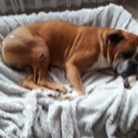 Wesen: anspruchsloser und netter Boxer, muss noch immer an Gewicht zunehmen