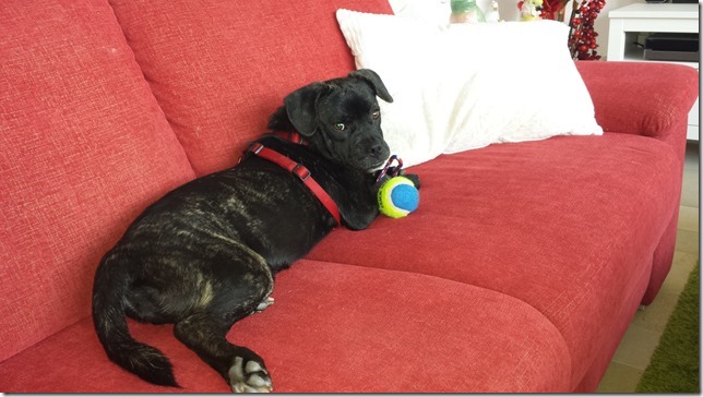 Nur meine Mitbewohnerin die Katze Rosa ist noch nicht so ganz überzeugt von mir, denn ich will sie immer zu bespielen. Aber ok, wenn Frauchen dann was sagt, bin ich schnell wieder brav und setz meinen Mädchenblick auf.