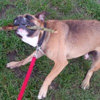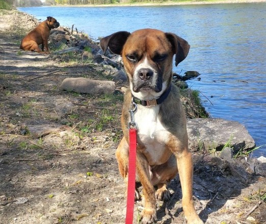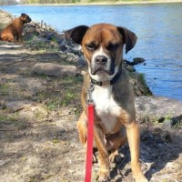 Mimo ist ein ganz liebenswerter Boxer. Verspielt und verschmust. Mit Artgenossen hat er keine Probleme.