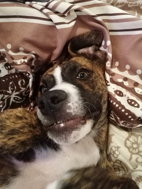 Angeblich ungewollt hatte die Boxerhündin einer Familie Welpen bekommen – 10 an der Zahl. Da man diese auf keinen Fall behalten wollte, sollten sie in gute Hände übergeben werden. Der Vater ist ein Boxer-Sharpei-Mix.