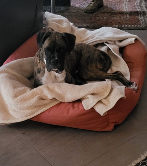 Mori hat alles problemlos überstanden und war froh, als er nach 5 ½ Stunden im Garten sein Beinchen heben konnte. Von Schüchternheit war nichts mehr zu merken, er marschierte ins Haus, beschnupperte alles und machte sich über den vollen Futternapf her. Danach wurden im Garten alle für ihn wichtigen Stellen markiert, nach dem Motto: „so, das gehört jetzt alles mir“. Anschließend kuschelte Mori sich in das Hundebett der Vorgängerin und schlief tief und fest. Das Hundebett liebt er über alles, aber genauso gern kommt er zum Kuscheln und Schmusen zu mir aufs Sofa, am liebsten stundenlang.