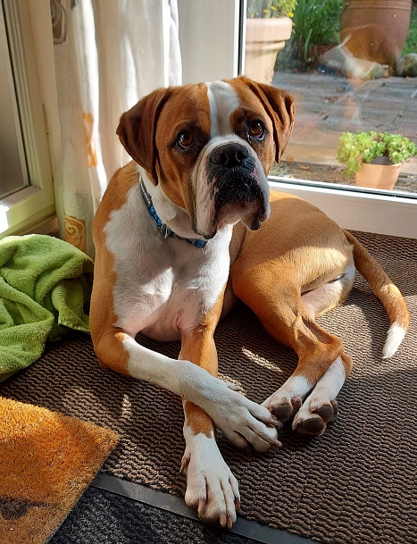Wesen: temperamentvoller und lieber Boxer, Einzelplatz, KEINE KATZEN, KEINE KLEINEN HUNDE, wird draussen mit Maulkorb geführt