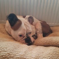 Fast jede Bulldogge hat Augen-, Ohr-, Zahn- und Fellprobleme. (Cherry Eye, Demodex, Hühnerallergie…) Jede zweite Bulldogge hat Rücken- oder Gelenkprobleme. (Patella luxation, Arthrose, Spondylose, Hüftdysplasie…).