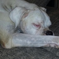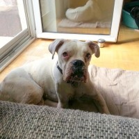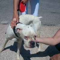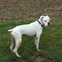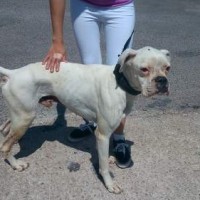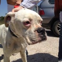 Neos ist ein Albino-Boxer. Er wurde in der Nähe von Alicante aufgefunden. Dort muss er mindestens schon 10 – 14 Tage ausgesetzt gewesen sein. Sein Zustand war sehr schlecht – fast verhungert und verdurstet.