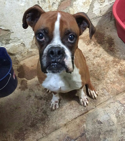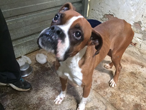 Neron ist ein hübscher Boxer, im besten Alter. Er hatte großes Glück, dass befreundete Tierschützer ihn übernehmen konnten.