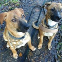 Aufgeweckte kleine Boxer-Labrador-Welpen, das sind wir. Unsere Mama hat uns alles Wichtige beigebracht und wir sind, so unsere Pflegerin, einfach nur goldig.
