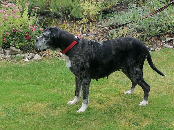 Solange ihr andere Hunde auch ruhig und mit Respekt begegnen, ist sie gesellig und freundlich. Für Rüpel und Kläffer hat sie nichts übrig und diszipliniert diese routiniert. Katzen leider auch, weswegen wir sie eher in einen Haushalt ohne Katzen geben würden.
